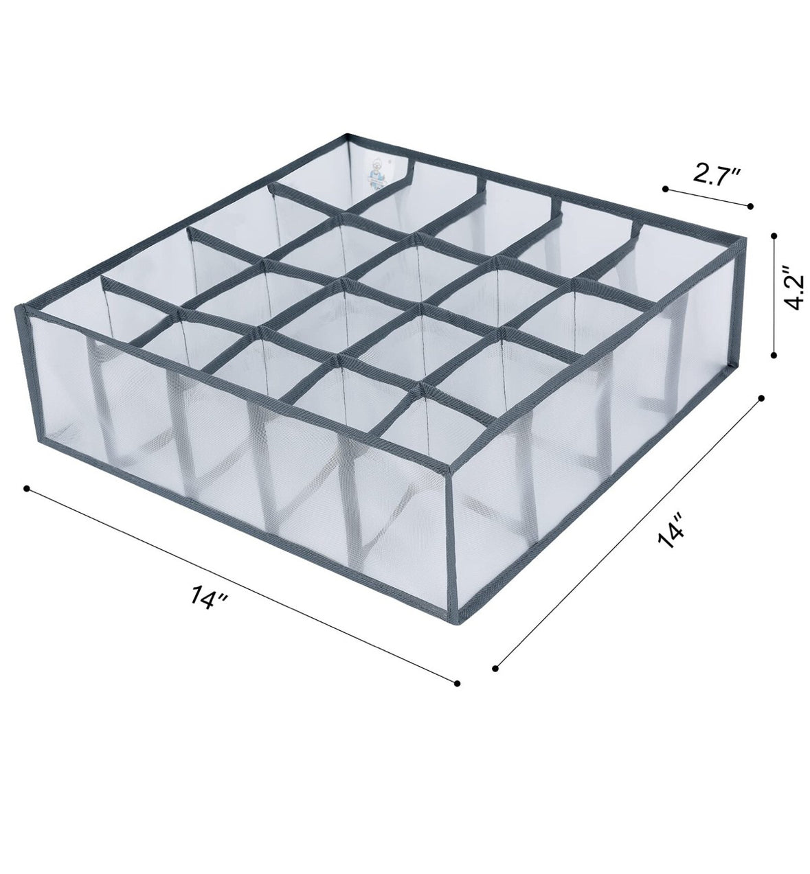 Este práctico organizador con 20 compartimentos es la solución perfecta para mantener tu ropa interior siempre ordenada y al alcance de la mano.